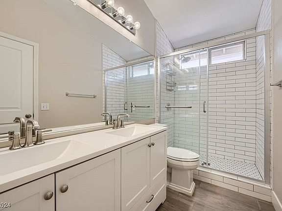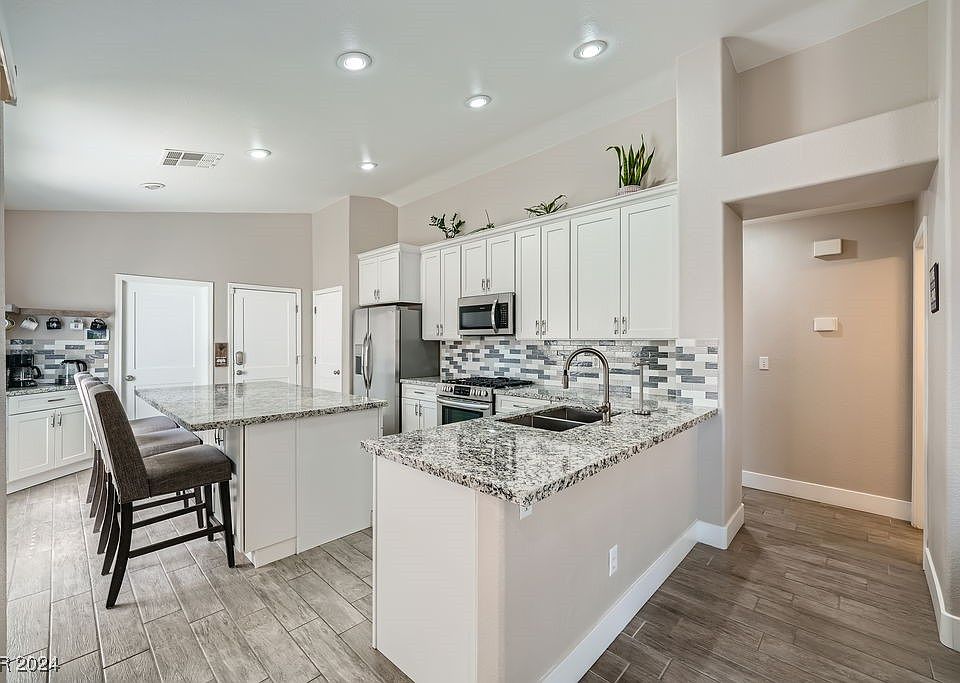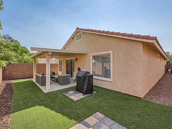 Great single-story home located in the Arbors at Summerlin. Spacious upgraded kitchen has been remodeled with Shaker White Solid Wood Cabinetry complete with Pulls and Soft Close doors and drawers. This great space is well appointed with an eat in Island, Separate Coffee Bar, Pantry, Granite Countertops and Mosaic Backsplash. The Primary bathroom has been renovated with a White Subway Tile Walk-In Shower, Upgraded Toilet and Vanity. Wood-like Plank Tile flooring throughout common areas and bathrooms. Cozy backyard features a covered patio, artificial turf and pavers for those cool fall evenings. Convenient access to Summerlin Parkway, 215 Beltway, Adjacent to Staton Elementary School and Tree Top Park.