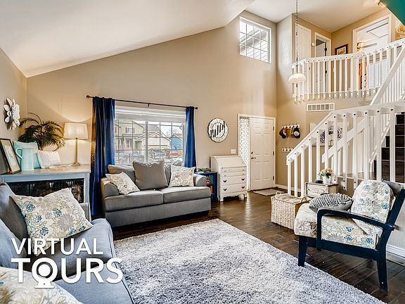 Mountain views from this lovely 3 bd / 2.5 ba corner lot home set in a quiet Parker neighborhood! You won't want to miss this home's newly renovated kitchen, open layout with vaulted ceilings and hardwood floors, and large deck and backyard! The formal and casual living and dining rooms provide plenty of space for entertaining or relaxing. Whether you are hosting dinner parties or cozying up by the fireplace. The beautifully updated kitchen offers stainless steel appliances, quartz countertops, herringbone tile backsplash, and soft close cabinets. A half bath sits across from the laundry room, and a half glass door leads to the deck overlooking the mountains. When it's time to wind down, opt for any one of the sizable upstairs bedrooms; the primary has a walk-in closet and ensuite bath, with a dual sink vanity, garden tub, and glass enclosed shower, while the others share the full hallway bath. Retreat to the backyard to find a stamped concrete patio, lawn, and room to garden along the privacy fence. Other features: Central A/C and Forced Air heating; 2-car garage; New energy efficient windows (new doors to be installed in May/June); Sprinkler system; Energy efficient appliances; Storage space available in the basement and shed. HOA covers trash, common area maintenance, and community events. Located near a community pool and trail, Black Bear Golf Club, and shopping and dining in Downtown Parker. Easy access to Rt. 83 and Denver! Buyer should verify all information.