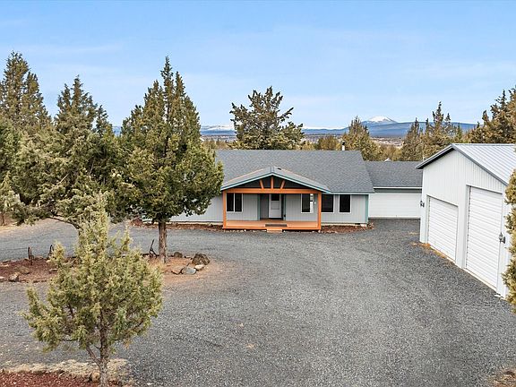 Perfect blend of comfort, space & breathtaking views in this charming ranch-style home on 4.99 acres in Crooked River Ranch! On serene setting w/ stunning mountain views & backing to tranquil BLM land, this home offers the ideal retreat. Bright & inviting living room w/ vaulted ceilings, hardwood floors & cozy wood-burning stove. Kitchen w/ quartz countertops, SS appliances, oversized walk-in pantry, eat-in bar & lots of cupboard space. Adjacent dining area w/ easy access to back deck through sliding doors. Primary bedroom w/ private ensuite bathroom. 3 more bedrooms share a full bath w/ tub/shower combo. Dedicated laundry room w/ separate door to back deck. Enjoy energy efficiency w/ whole-house fan. Covered front & back decks, garden space & small orchard, creates peaceful outdoor oasis. Spacious 36' x 36' shop provides tons of room for hobbies, storage or creative projects. RV hook-up w/ dump station. Minutes from restaurants & The Cove Palisades State Park w/ boating, fishing.