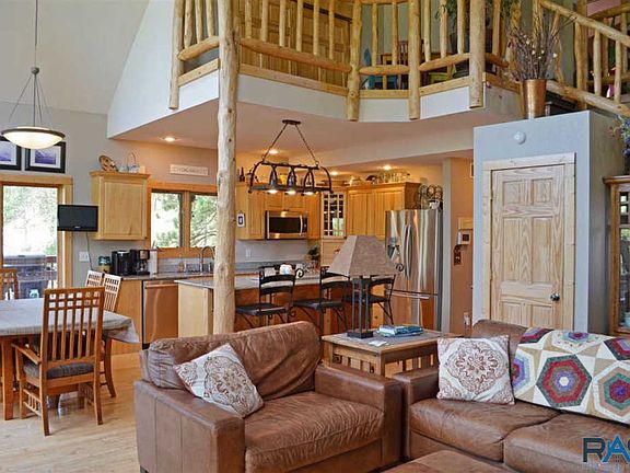 Exquisite custom built home, easy access to interstate & providing convenient access to the Hills. Main floor boasts chef's delight kitchen w/substantial center island, granite countertops, high-end appliances & heaps of cabinets. Sun-splashed dining room w/walkout access to HUGE wrap around deck & open living room w/soaring ceiling, cozy stone-encased fireplace & floor-to-ceiling windows. Main floor offers convenient laundry + luxurious master suite w/walk-in shower & separate jetted tub. 2 beds & 1 full bath upstairs. Walkout basement showcases incredible & holds 4th & 5th beds, full bath & ENORMOUS family room & easy access to plumbing to add a wet bar. Large wrap around deck w/covered areas provide space to enjoy the views & outdoors. 2-stall attached garage, room for a shop. Only 10 min to Sturgis, 30 min to Deadwood & 15 min to Rapid City. Piedmont E. S. & Stagebarn M.S. are brand new!