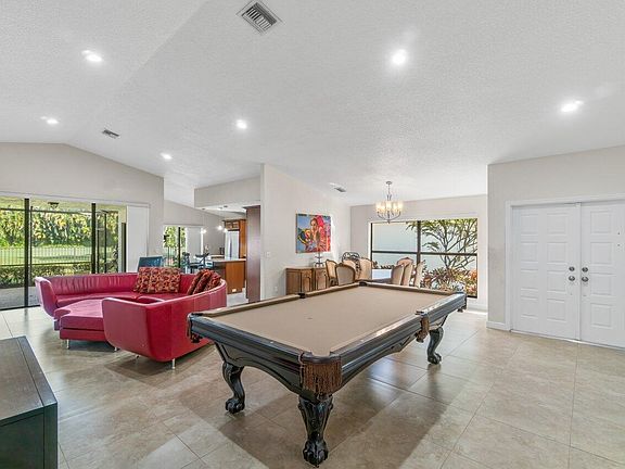 Don't miss this Impeccable 3-bedroom 2 bath single-story home in Desirable Boca Woods Country Club. Move-in ready with very spacious & open eat-in Kitchen -Island counter seating, quartz countertops, wood cabinets & stainless-steel appliances. Updated Bathrooms, Spacious & Bright floor plan with tile floors through-out the home. Enjoy the relaxing patio overlooking the 4th hole golf course. No rear neighbors. Room for a pool. Boca Woods is an All-Aged community that offers extraordinary value with something for everyone. TWO 18-Hole Champion Golf courses, pro-shop, driving range, tennis, pickleball, card rooms, state of the art fitness center, spa, hair & nail salon, bar, fine & casual dining & so much more!! Membership $95,000. $20,000 Refundable when sell. $21,729 + tax annual