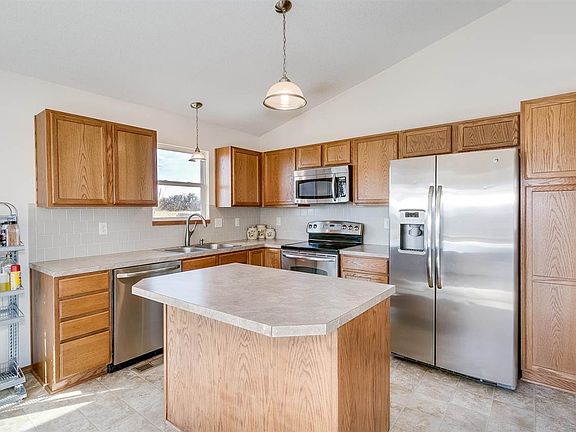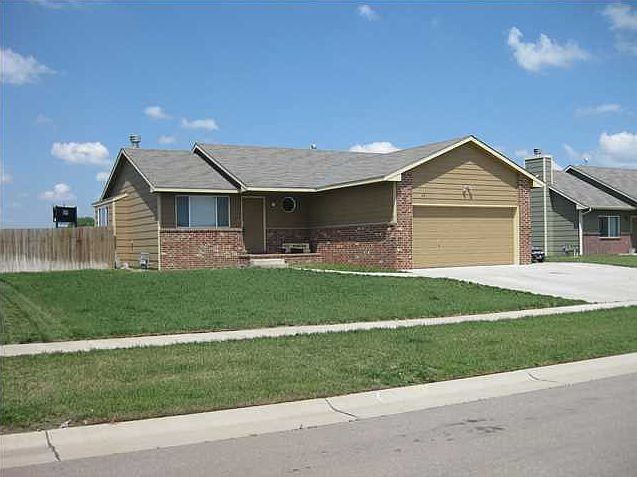 8 YEAR OLD HOME IN THE GODDARD SCHOOL DISTRICT*OPEN AND BRIGHT KITCHEN HAS A LARGE CENTER ISLAND, AN EATING BAR, TILE BACKSPLASH, AND A PANTRY*SIZABLE DINING SPACE HAS TONS OF NATURAL LIGHT*SPACIOUS LIVING ROOM FEATURES VAULTED CEILINGS AND A FIREPLACE*GENEROUS MASTER SUITE BOASTS A WALK IN CLOSET, HIS AND HERS SINKS, A JACUZZI TUB, AND A SHOWER*FINISHED BASEMENT OFFERS A MASSIVE RECREATION ROOM, THE THIRD BEDROOM, STORAGE, AND AN IMMACULATE BATH WITH A TILE WALK IN SHOWER*DESIRABLE MAIN FLOOR LAUNDRY*GREAT LOCATION! HOME IS WITHIN WALKING DISTANCE OF A FOOTBALL FIELD, TWO BASEBALL DIAMONDS, AND A PLAYGROUND! HOME NEEDS A FEW COSMETIC UPDATES, BUT IT IS PRICED ACCORDINGLY!