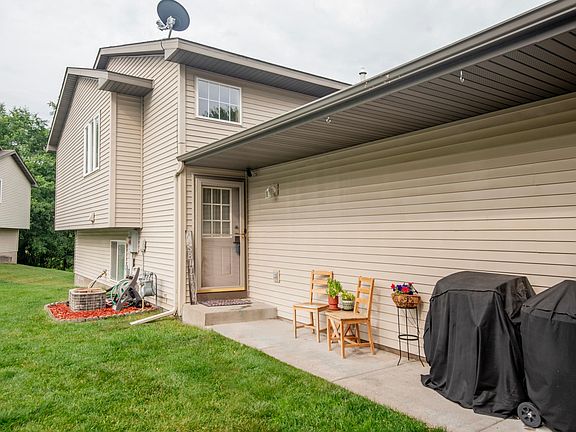 Fantastic end-unit townhouse with open concept! The living room, dining room and ,kitchen floods with natural light. The living room has a neutral colored carpeted while the kitchen and dining room floors are beautiful wood-look laminate flooring (installed in 2019) and has newer lighting as well. There is a Full bathroom on upper level. Both upper bedrooms have walk-in closets. The Kitchen has Tile backsplash, stained wood cabinetry and stainless steel dishwasher, microwave, stove and refrigerator (installed in 2019). The lower level family room is very spacious and has newer carpet and built-ins. The family room has walk-out patio door to backyard green space. Just off the backyard is a bike/walking paved path. 3/4 bathroom in lower level has ceramic tile on walls and floor. The lower level has a finished 3rd bedroom. Laundry is also in the lower level. The electricity in the 2-car garage was brought up to code in 2019.