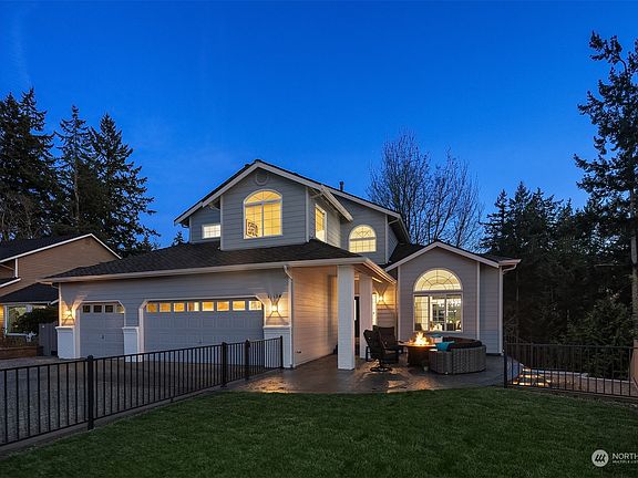 Exceptional 5BR, 3.5BA greenbelt home with water views, 2788 sq ft of meticulously maintained living space. Nestled in a serene setting without the constraints of an HOA, this three-level gem boasts a wealth of upgrades. 2nd floor features primary suite, 2 additional bedrooms and bath. Basement MIL features 2 additional beds, bath, and kitchenette. Newer presidential roof, plush new carpet, refinished hardwood floors, fresh landscaping, new light fixtures, and the list goes on. Fresh interior and exterior paint in modern hues, complemented by a stamped concrete front patio equipped with gas fireplace for outdoor enjoyment. Located in Harbour Pointe, Mukilteo Schools. Easy access to I-405, I-5, and Paine Field Airport.