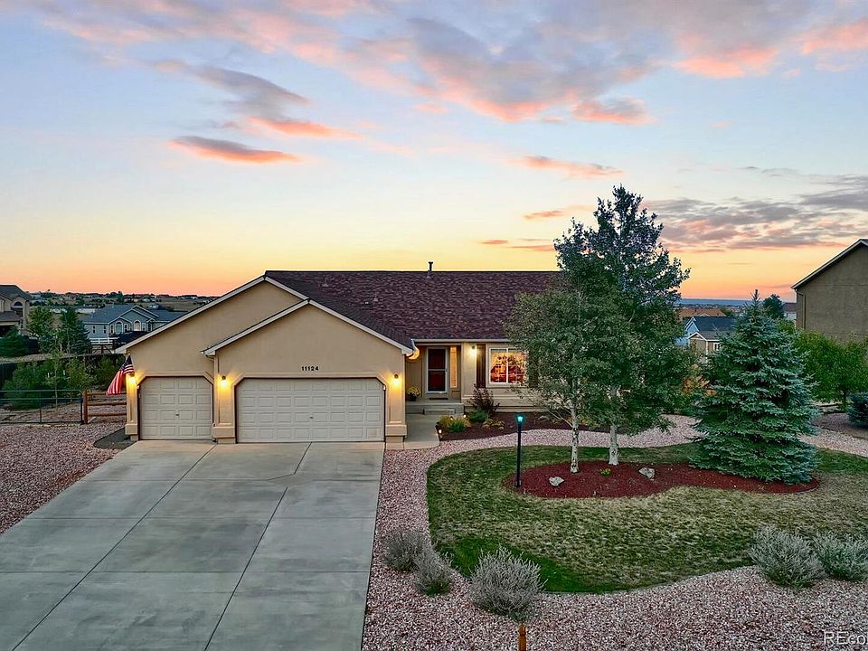 Look no further - this is your show-stopping rancher on a half acre! This beauty has everything you need and then some! Enjoy the space and privacy offered by a large lot and split floorpan with central living areas. The luxurious master suite will make you feel like you're on vacation every day in your own private retreat. The master bath is unforgettable with a spa-like double headed shower overlooking the fireplace. Do you want space from your neighbors but don't want significant acreage to maintain? This oversized lot delivers the privacy you're looking for and the gently sloped landscape is your paradise to enjoy the seasons. Exit the kitchen and step onto a large patio where you can grill, host and enjoy the afternoon shade as the sun crests the horizon. Step into the gazebo and enjoy your own personal outdoor room large enough for a party. Raise a garden in your raised beds, enjoy a bountiful harvest from your apple trees and plum tree, and enjoy plenty of storage in your two sheds. Are you looking for your very own space to wind down or send the noisy ones? Set up the massive basement flex area for anything you like. It could be your personal theatre room, a massive place for games and activities or all of the above. The entire floorpan is your very own canvas for modern living and comfort. Don't miss this opportunity to have all the square footage and space you need. Recent updates and improvements include: Master shower floor (2020), new stucco (2020), water heater (2019), roof (2015), A/C (2011). This beauty is waiting for you to make it your home!