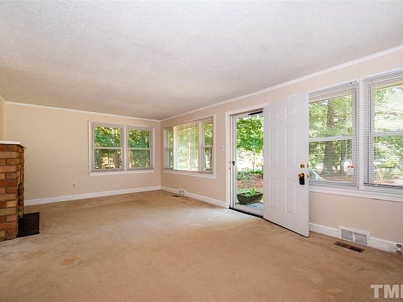 Calling all investors or handymen. Spacious North Raleigh home on .46-acres convenient to RTP, RDU, I-540, shopping & dining. Large living room with a decorative fireplace, cook friendly kitchen, dining area with bay window. Large family room features a beamed ceiling, hardwood floors, masonry fireplace & custom built-ins. Spacious master bedroom has private bath. Office/flex room with closet adjacent to kitchen. Great sun room leads to deck and wooded level backyard. Great fixer upper. Sold "AS IS"