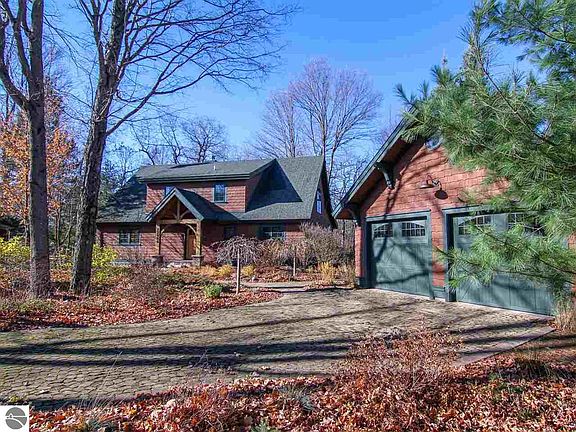 A beautiful and unique home situated in one of Crystal Mountain's most beautiful and unique home developments. This 3 br/2.5 ba timberframe home exudes the perfect blend of old world charm and up north cozy. Huge timbers provide the framework for dramatic spaces, while bricks, stonework, hardwoods, and earth-toned slate set the mood. A main floor master suite is just steps away from the expansive family and dining spaces. As your friends gather at the breakfast bar, you'll be enjoying the well-designed kitchen space. Two second floor bedrooms provide plenty of space for family or guests to relax in after a day of recreation, while the huge lower level offers the ideal game room environment, complete with a bar area. Enjoy the views of the Mountain Ridge golf course views throughout the seasons across one of the largest Trailside parcels. The detached two car garage offers additional storage space above...or perhaps additional living space? Whether sitting at the fire pit, relaxing on the expansive covered deck, or enjoying the relaxing 3 season room, you'll likely feel like you've found your perfect northern Michigan escape. Best of all, Crystal resort amenities, including a world-class spa and fitness center, are just a short drive or cart ride away. Crystal Mountain FOUR SEASONS CLUB membership options available.
