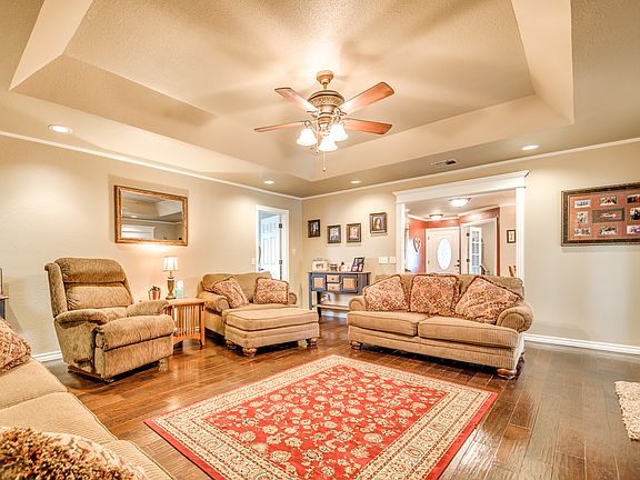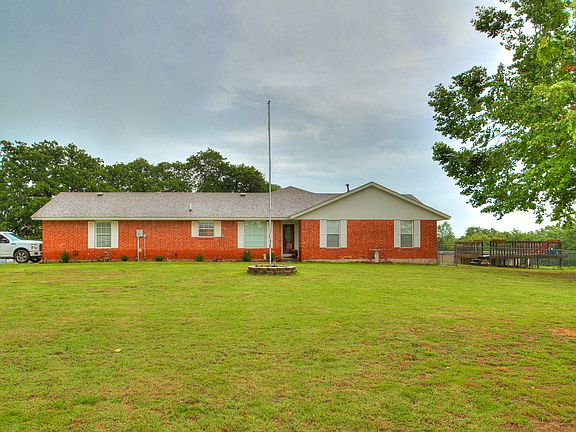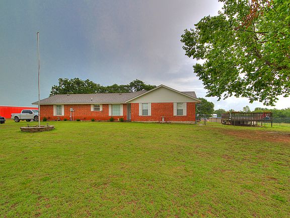 CLOSING COST!!! Seller will pay up to 3% BUYER COST with right offer!! BRAND NEW ROOF AND DECKING! 5 ACRES, 30X50 SHOP, POOL, 50' RV PAD AND PLUG INS, STORM SHELTER..... This home is GREAT for stay at home "STAYCATIONS". Outdoors: Covered patio comes with TV, 2nd outdoor sitting area over looks property, large firepit to roast hot dogs & smores, Pool w/large deck & view overlooking property, Plenty of room on the 5 acres for livestock, play on ATV's or store your toys (boats, RV, etc.)Inside: Spacious Kitchen w/breakfast sitting area, coffee/wine bar, Tons of cabinet space & full of special pull out drawers/cabinets, large pantry, bonus warming oven, spacious granite counter tops, 2 Primary bedrooms with private baths, large living area with hardwood floors, 2 offices/study's, large laundry room, dual HVAC & water heaters for each side of the house, faux wood blinds throughout home. A home, vacation place & work area all wrapped into ONE "AMAZING PROPERTY"