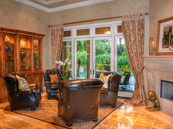 Look no further your dream home is now available! Decorator designed and furnished to the highest level throughout.This home was built by Master Custom Builder Castleworks LLC. No expense was spared on the home and the property was landscaped in a resort style and with privacy galore. The chefs kitchen features commercial grade GE stainless appliances and gorgeous granite counters that overlook the lagoon style pool and spa. Four expansive suite style bedrooms and baths plus a full pool bath and guest half bath offer privacy to the owners quarters. The owners quarters offer huge walk in closets a private gym overlooking the pool and a office study. The game room is located off the great room that overlooks the kitchen. High 12 foot ceilings and wood beam and other décor accent this beautiful home. A wet bar and butlers pantry connects the kitchen and formal dining room and is adjacent to a formal sitting room and natural gas fireplace with a precast mantle and façade. Off the kitchen and near the garage entry you will find the laundry and a built in desk area that can be the homework area or your bill paying station. The garage is a 3 car is oversized and features an epoxy coated floor attic storage built in garage works storage racks and a whole house central vacuum system. The resort style pool and spa features a travertine deck and pebble tech bottom as well as a gorgeous outdoor gas fireplace and summer kitchen are accented by a huge covered lanai that features wood detail ceilings.