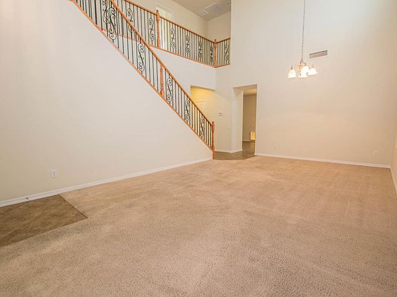 This incredible home features 4 bed, 2.5 bathroom, + a den on a spacious 2,435 square foot floorplan within Bella Via. The freshly painted interior boasts soaring high cathedral ceilings and upgraded iron staircase railing. The large kitchen is immaculately upgraded with stainless appliances, Corian countertops, a built-in microwave, and a vast amount of counterspace including an island! The master suite is situated on a split floorplan upstairs and has a stunning full bath to include dual sinks, a private toilet room, a large walk-in closet, and separate tub and shower. The backyard is truly a sanctuary with its extended covered patio, built in BBQ, and sparkling Pebbletec pool with a water feature.