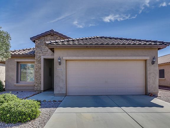 Beautiful inside and out with Italian stone front and upgrades throughout. This three bedroom, two bath split floor plan has 18 inch tile throughout the home. Kitchen has granite counters, stainless steel appliances, under and over counter lighting, with mirrored backsplash, and upgraded staggered maple kitchen cabinets. Features include soft water system and reverse osmosis, surround sound in living area, upgraded lighting, ceiling fans, large walk-in closet in master bedroom, garden tub and enclosed rain glass shower in master bath, extended back patio with pavers, and double gated back yard entry. There is a tandem garage for extra storage and an oversized utility room. Furniture and many accessories available for purchase on separate bill of sale.