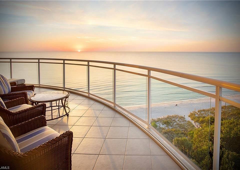 Beachfront bliss with awe-inspiring views of the Naples coastline. This exquisitely crafted 4389 SQFT 3-bdrm, 3.5-bath home, with expanses of glass that capitalize on spectacular views of the sand, blue sky, & Gulf. Designed for quintessential indoor-outdoor living, with a curved 670 SQFT lanai to experience unobstructed vistas and sunsets. Thoughtful design & attention to detail are throughout this Renee Gaddis interiors custom home, offers extensive millwork, built-in wet bar & the finest finishes with natural light that pours into the expansive living space. Top-of-the-line open chef's kitchen appointed with the finest custom cabinetry, & professional-grade appliances. Natural gas cooktop with additional refrigeration located in the extremely large butler's pantry. The large master suite features custom built-ins and the perfect view. A dressing room/walk-in closet, & a luxurious bath that likens an upscale spa. Two additional large guest en-suites. Moraya Bay residents enjoy unparalleled, extensive amenities, include a 24-hour doorman, concierge, private beach club, state of the art fitness center. It's your new home within a five star resort