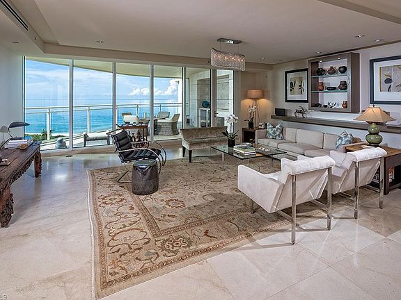 Wonderful opportunity to purchase in one of Naples most exciting, highly amenitized, pet-friendly beachfront condominium buildings. This three bedroom plus den unit was designed with a perfect interior flow, well-thought out spatial relationships, generous room sizes and ceiling heights, magnificent dressing and bathroom accommodations, and most importantly, exhilarating Gulf views. Exceptional improvements have been made to the interior spaces offering a light-filled modern backdrop which is the perfect contrast to the rich blue skies and waters of the Gulf of Mexico. From grand entertaining spaces to the thoughtfully equipped and convenient preparatory kitchen and laundry areas, the developers did their homework and one of the very finest and well-received buildings ever built on the beach was conceived.