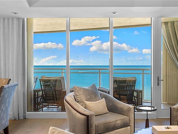 Experience beachfront luxury at its finest. Moraya Bay offers full amenity, resort-style lifestyle featuring indoor and poolside dining, beachfront lounge chair service and 24-hour security, all in one of Naples premier Gulf-front communities. This exquisite three-bedroom residence in the desirable 05 stack showcases one of the widest and closest beach views in the building. Completely reimagined by Renée Gaddis Interiors, the home blends refined design with top-tier craftsmanship. The gourmet kitchen features a La Cornue range and oven, Thermador commercial refrigerator, and an impressive butler’s pantry with three Thermador wine refrigerators plus an additional Thermador refrigerator and freezer. The primary suite offers sweeping Gulf views, a generous walk-in closet and a spa-like marble bath. The private elevator entrance opens directly into your residence, creating an intimate sense of arrival and privacy. With impeccable finishes, sophisticated design and unrivaled beachfront amenities, this is one of Naples exceptional coastal offerings.