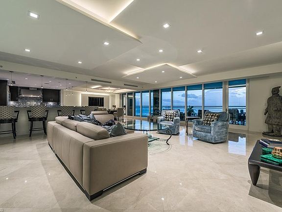 With sunset views and direct beachfront access, this stunning 4,000+ square foot condo, positioned on the 7th floor in exclusive Moraya Bay was designed for entertaining. Enter through the private elevator and gorgeous marble foyer, the open-floor plan and floor-to-ceiling glass, allows for magnificent Gulf-front views from the Kitchen, Dining, Great Room and Master. This 3 bedroom, 3.5 bath residence with exquisite finishes is the only direct view unit for sale in the building. Fully loaded kitchen with Wolf gas range, dishwasher, multiple refrigeration units, two ice makers and an additional full-size refrigerator. Its 530+ square foot open lanai (with glass railings) makes sunsets feel close enough to touch. And when youre not spending time inside this stunning space, Moraya Bays two pools, beach and poolside service, restaurant, gym, and full-time manned security and concierge services, make you feel as though youre at a 5-star resort.