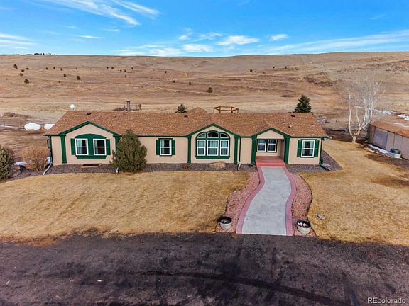 40 ACRES CLOSE TO PARKER ZONED AGRICULTURE!!! Over 4000 square foot house, two outbuildings and one shed leaves plenty of room for endless possibilities. The workshop used to be a tack room and is complete with stall doors, water, electricity and heat. The Oversized garage was built in 2013 and has automatic doors, electricity and is big enough to store an RV! Rolling hills and plenty of flat land to build more if you're so inspired. Think BIG! Horses, goats, chickens, GROW your own garden, build income property or a guest home, OR just sit back and relax! Private road with few neighbors brings you right HOME to a tranquil setting with mountain views, fresh air and Colorado living. This four bedroom, 2 bath home features new flooring and paint with beautiful custom railings inside and out on the back deck where you can watch the sunrise. It's complete with a Primary Suite with five-piece bath and jetted tub. Three additional bedrooms to make a home office or flex space. Kitchen includes Kraftmaid cabinetry and all appliances installed in 2019 except the microwave. No need to buy an air-fryer as the oven is both convection & electric. Induction stove top keeps your hands safe from burns and quickly boils water. Close to the kitchen inside the utility room you'll find the washer and dryer also included. Two living room spaces and a dining room. Sit by the fire in YOUR living room on those chilly Colorado nights or take it outside to a fire pit. Unfinished walkout basement to make all your own. SO many possibilities, don't wait!!! Schedule a showing today and don't miss the matter port tour!