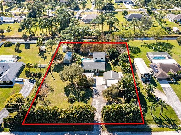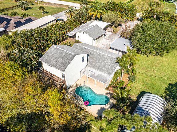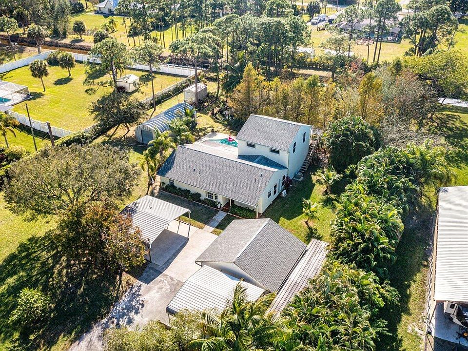 WELCOME HOME to country living at its best and incredible property that is a Certified Wildlife Habitat! This gem features (5) bedroom, (3) full baths, oversized (2) car garage, (2) 20'x20' carports, 38'x16' Quonset hut shop and rests on a private and high and dry 1.25 acre lot. ENTERING the solar powered gate brings you into a beautiful oasis of serenity, endless possibilities, trees galore and stepping inside you will discover spacious living areas, 14' x 15' kitchen boasting; 2019 black stainless steel appliance package, solid wood cabinets, huge snack bar and lovely bay window. And passing through you will discover; water and pool views from virtually every room, 2019 washer and dryer under AC, 5'x5' walk-in pantry/storage closet, soaring 12' vaulted ceiling's, upgraded baths, (CLICK) french doors, beautiful millwork, 6'x12' master walk-in closet, a split floorplan with two AC zones and for you extra cold sleepers there is a 2019 GREE mini-split system in the master suite, 2020 UV Light in HVAC, solid wood staircase with storage underneath or it could be the perfect Harry Potter playhouse. STEPPING OUTSIDE into the 10' x 24' covered lanai brings you to a sparkling pool, 23'x36' open patio, covered 8'x 24' patio and balcony sundeck that is simply a perfect space for relaxing, family gatherings, entertaining and outdoor fun! And then stepping out into the green space and sanctuary you will find a walking bridge from one side of the pond to the other, butterfly and vegetable garden area, fully fenced private yard, 2019 pond pump, 2020 retaining wall, cypress trees that provide a cool oasis and a fully stocked pond with bass, tilapia, bream and catfish. In addition, you will also discover loads of mature trees and fruit trees such as; pines, oaks, maple, cabbage, Sylvester, over 20' areca palm hedge, mulberry, bananas, coconuts, pineapples, mango, avocado, loquat, papaya, canistel and many more. SAVINGS AND PEACE OF MIND from the hurricane windows and shutters, ridge vent, garage kept water system, 2021 well pump and bladder, 2020 septic tank, 2021 gate opener and whole property (5) zone sprinkler system. LOCATION... LOCATION... LOCATION... This gem is tucked away in one of the MOST sought after areas in The Acreage! There is shopping and dining just around the corner and nine quaint parks with countless activities such as; free community concerts, play grounds, picnic areas with grill pavilions, fishing, fitness trails, equestrian trails, football/baseball/soccer fields, skate and equestrian parks, basketball/volleyball/racquetball, tennis and is located just minutes to everything one could possibly desire; Florida's Turnpike, I-95, Palm Beach international Airport, world class shopping, fine dining, arts, entertainment, world class equestrian shows and facilities, beaches, theater, golf, business and economic development, education, green living and so much more! COME AND SEE why The Acreage is very sought after and take in the fresh country air and peaceful sounds of nature. Bring your toys, pets or just about anything your heart desires... The possibilities are endless! Come and enjoy your life away from the hustle and bustle and your evenings gazing at the stars. Run like your pants are on fire, this beauty will not last long and be sure to check out the below wholesale home improvement VIP discounts located in the photos and on site and the video link!
