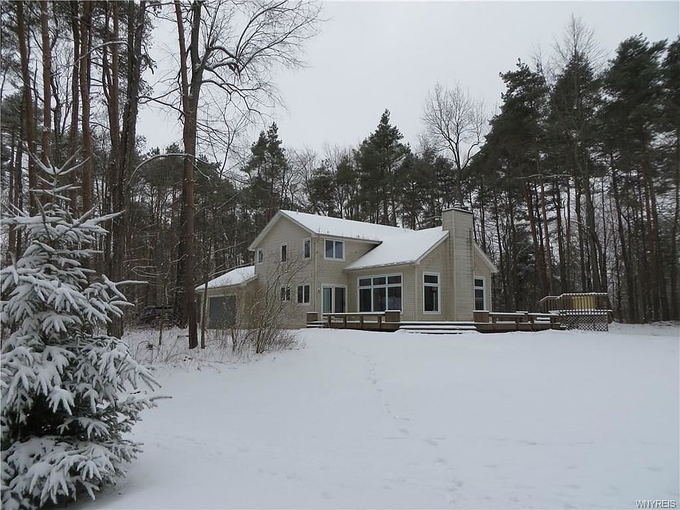 Large country home nestled among pine trees on over 12 acres. Huge Great room features WBFP (never used by current owner), 3 walls of windows and a built in entertainment center. Modern white kitchen has hardwood floors, huge breakfast bar, pantry, desk area,French doors to massive deck. Cooktop and dishwasher are brand new! Dining room was used as an office.First floor bedroom,full bath and laundry room.Second floor holds master suite w/ full bath and walk in closet,2 bedrooms, third full bath,lots of closet space and common area.Roof new in 2014,security system,central air, additional garage.Winding blacktop driveway. Private backyard.Price reflect needs for exterior clean up and new carpeting. Showings begin at OPEN HOUSE Sunday Feb. 16th at 1PM...No Exceptions. Offers due Tuesday Feb. 18th by 3PM.