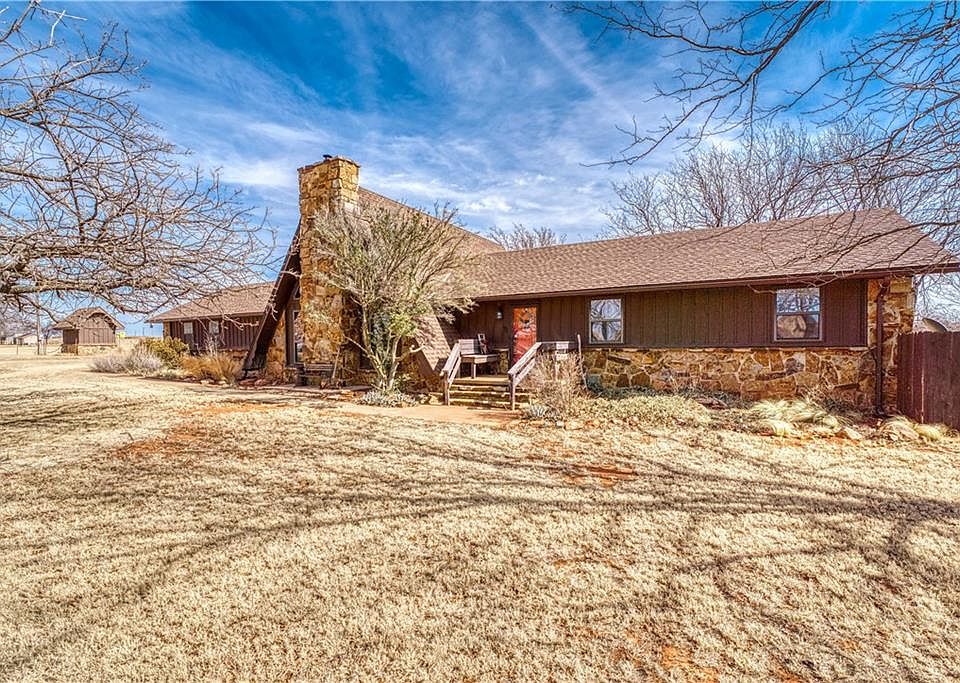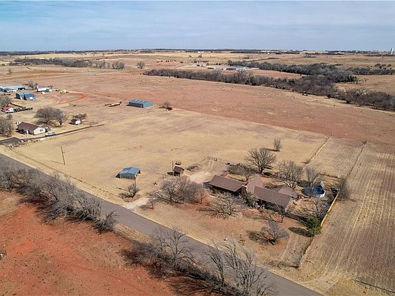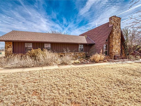 This home has been well maintained and updated and includes many built in cabinets throughout including a dining room china hutch. The Master bedroom features his/her closets and patio doors leading to a nice deck. Enjoy evenings taking in serene scenery and abundant wildlife including turkey and deer. A new hot water heater was installed in 2021 and the HVAC compressor was replaced in February of 2022. Enjoy the wood burning fireplace insert in the beautiful living room with vaulted ceiling that boasts of cedar beams. The large living room picture windows overlooking the backyard and acreage provide yet another beautiful view. Mature pecan, acorn, maple and oak tress dawn the front yard and the sprawling and fenced 5.4 acres has had as many as 5 horses on it at one time. Within minutes of Elk City and with all paved roads leading to the home, this property is sure to not last long. Interior pictures to follow soon!!