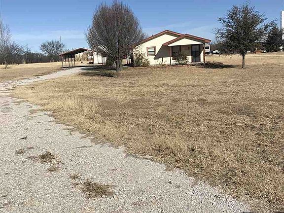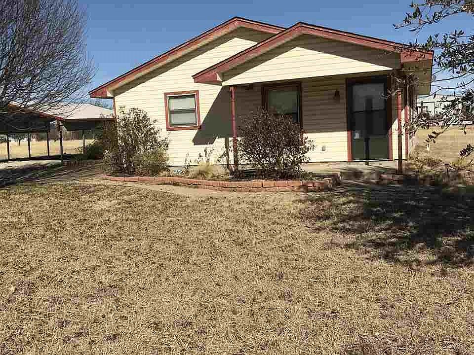 Spacious country living on 2.3 acres mol, nice landscaping with raise flower beds, paver patio, and paver walkways makes this home very special and inviting as you enter by the charming front porch. The kitchen is large and roomy with lots of cabinets and work space. It is open to a spacious living area with room for all your furniture. All appliances stay including refrigerator and washer/dryer. The bath room is a nice size with cabinets and storage. This lovely home is one you will want to see. It is in great condition and has new paint in several rooms. This property has the added features of a large metal storage building, attractive carport, and a storm shelter with easy access. It is close to town and close to Interstate 35 assess for conveniet country living.