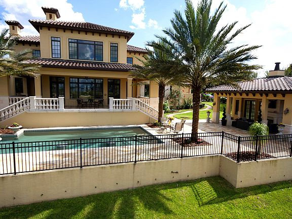 Extraordinary, LAKEFRONT, six bedroom, 10,000 + square foot estate (heated square footage includes Guest House, Theater + Game Room in basement) located in the exclusive community of Lake Butler Sound. Interior design by acclaimed designer "Perla Lichi" and built by Ray Coudriet in 2007. This home is sited on one of the largest lake front lots in the community at just over two acres. Side entry four car garage with circular driveway lead to a grand stone entry with custom iron doors. Upon entering the estate you will immediately be drawn to the lake front vistas, granite flooring marble columns and superb iron work. Above, a dome ceiling is adorned with gold leaf and hand crafted frescos. The office features custom mill work and a gas fireplace. State of the art electronics with security cameras, touch panel controls for sound, lighting and music plus two gas generators. The kitchen was imported from Germany, hand crafted by SieMatic with custom cabinetry, granite counters, double "Sub Zero" refrigerator with freezer draws, eight burner "Wolf" gas range with stone hood and double ovens. The two story family room is adorned with a marble fireplace, custom woodwork along with a wet bar. The master bedroom boasts hardwood floors and connects to a large master bath with jacuzzi tub, walk in shower and his and her vanities. The walls and attic have foam insulation and is one of the few homes in the area with a basement. Guest house with a bedroom, bath and living area - overlooking the pool and Lake Butler.