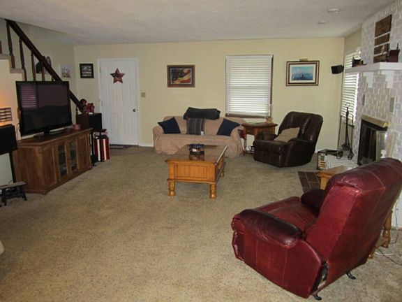 1.5-story home with extremely large living/dining area with fireplace, large eat-in kitchen, 4-5 bedrooms, 3 baths, appliances, partial basement, 3+ car detached garage, wood deck for grilling. Country setting on approximately a half acre. Must see to appreciate the spaciousness.