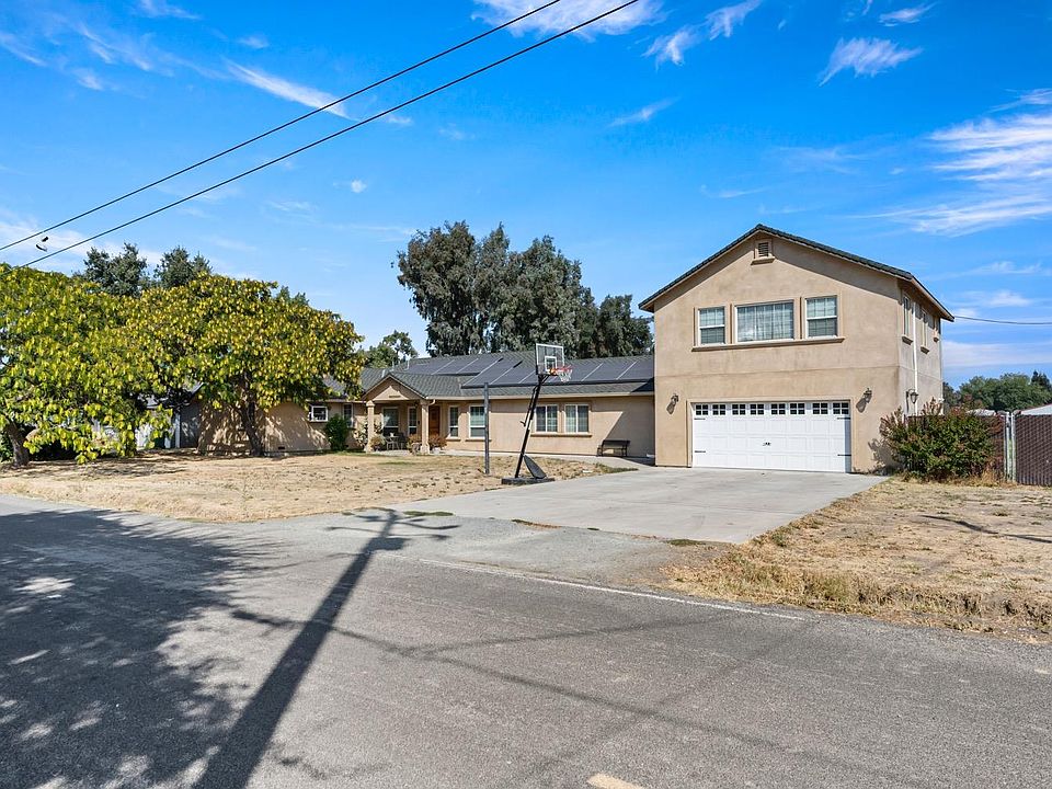 Welcome home to Winegrape capitol of the world'' the beautiful Lodi CA. This sprawling custom estate sits on 2.47 acres of Greenbelt area close to the city limits. Home features 4 bedrooms and two bathrooms with a large family room, vaulted ceilings, ceiling fans, dual pane windows, newer laminate flooring, recessed lighting, sliding glass doors to a beautiful covered patio, a separate dining area perfect for holiday dinners & a spacious kitchen with oversized island. Amenities include multi zone HVAC units in the main house, conditioned loft above the garage for office or additional living space, four car tandem pull thru garage opens in front & rear with additional wall storage cabinets, leased solar helps tremendously with utility costs and your very own 8'x40' storage container is also included. Location, location, location!!! Close proximity to Golf Course, Micke Grove Park/Zoo, serene walking/biking trails, award winning spa's, waterways & of course some of the best wine you could imagine!