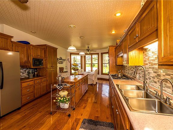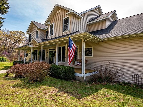 Check out this very spacious 3,881 SF, 4 BR, 4 BA, 3 car garage home on 27 acres! It includes an in-ground pool, approx 200 yards of Illinois River frontage, 30' X 40' pole barn & detached carport. There are wood floors in the entry, living room & kitchen. The main bedroom & bath are on the first floor, with 3 bedrooms, 2 baths & large family room upstairs. The kitchen's added features of an island, double oven, triple sink with farm house faucets & pretty backsplash make time spent in the kitchen a delight. Large windows on both sides of the fireplace in the living room provide tons of natural lighting, as do the bay windows in the eating area. Spacious utility room. There is also a bonus room above the garage. A mowed lane from the house to the river makes for an easy/beautiful walk or ride to the river access. This gorgeous home & property is an extremely rare find. Only minutes from Farmington schools.
