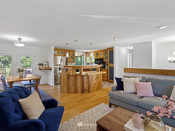 Beautiful 3-bedroom home on 1/3 of an acre in wonderful Silver Lake! Upstairs has a bright great room with wood-burning fireplace, spacious living/dining room with bamboo flooring. A kitchen with granite tiles, garden window, custom made bar & cabinet doors in cedar. Master bedroom has an adjoining bath with custom concrete counters. Downstairs: large bonus room, slate flooring, utility room, shop & bathroom. Huge & private backyard with deck, shed, sauna & firepit. RV parking. New interior paint & A/C. Close to I5!