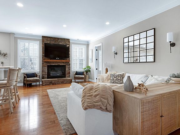 Welcome to gracious first-floor living in the prestigious Regency at Brier Creek Country Club. This sun-filled luxury home boasts 10-foot ceilings, arched doorways, and exquisite wood flooring throughout the main living areas. The beautifully appointed exterior features elegant stone accents and landscape lighting, setting the stage for the refined interiors within. Step into the inviting foyer, where guests are welcomed into an expansive family room highlighted by a dramatic stone fireplace with gas logs, flanked by windows that flood the space with natural light. The gourmet kitchen is a chef's dream, featuring stainless steel appliances, rich wood cabinetry, a gas cooktop, double ovens, and a charming breakfast area with a bay window. Sliding glass doors lead to a screened porch with an EZ Breeze system seamlessly extending the living space. The primary suite is a true retreat, offering a deep tray ceiling and an oversized layout. The luxurious en-suite bath features a soaking tub, a tiled shower with a bench, a double vanity and water closet. The walk-in closet has custom shelving and storage. With 2 secondary bedrooms and office/flex space, the design fits today's lifestyle. Outside, the expansive rear deck overlooks a beautiful backyard with serene, wooded views, providing a private oasis for relaxation or entertaining. Additional highlights include a laundry room with a sink and cabinets for storage (washer and dryer included), an epoxy-finished two-car garage, an irrigation system in both the front and backyard, and elegant plantation shutters throughout. Experience refined, low-maintenance living. The HOA maintains your yard, so you have more time to enjoy the amenities of the country club life! Welcome Home!