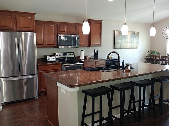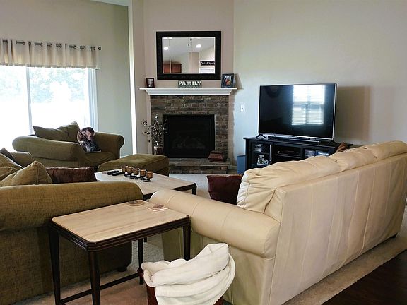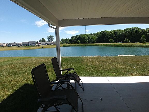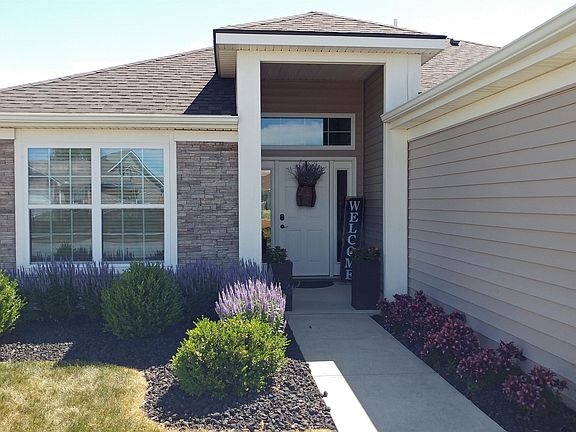 One of the many amenities in this attractive, 3 BR, 2 Full Bath, 3 car garage, 7 year new Ranch home, is the relaxing pond view out back. Appealing curbside view leads to a wide open feeling the moment you enter the foyer with the 10' ceilings that opens to a spacious living area that continues to the view out the patio door. From the open kitchen with large pantry and cabinet crown molding you will have views of the living room, the gas log fireplace and the pond. You will have a large owner's suite with a tray ceiling, ensuite bath, double vanity, walk in shower and large walk in closet. The floor plan includes split bedrooms. There is a separate laundry room with a storage closet. Out back is a covered 14x10 patio to sit and enjoy the water view. Shaw flooring in the kitchen area & foyer. Aurora Coves subdivision is only minutes from Fort Wayne's southwest amenities & I-69. Located in the much desired Southwest Allen County school district. Newer updated light fixtures in the foyer and dining area. All Stainless Kitchen appliances, washer & dryer, and custom blinds are included along with an underground dog fence & 1 collar. The 3 car garage has pull down steps for storage above. Easy access to service the furnace or water heater.