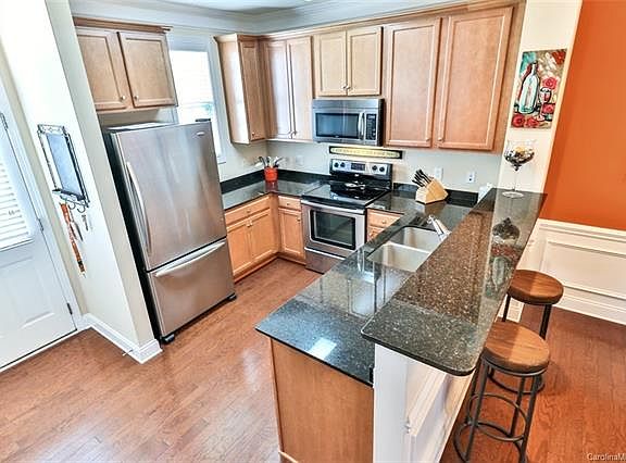 Location, Location, Location! Gorgeous Charleston Style Townhome in the Heart of Ballantyne with Tons of Parking and Sidewalks. Walk to Everything! - Restaurants, Shops, Businesses, and Top Rated Schools! Open Floor Plan with Stunning Moldings, Fireplace, Pre-finished Hardwoods on Main, Ample Storage, Maple Finish Cabinets, Stainless Steel Appliances, Granite Countertops with Breakfast Bar, Dining Area Too! Laundry on Upper Level. New Bamboo-Look Laminate Flooring in Master Bath with Relaxing Garden Tub. Ceiling Fans Throughout, Newer Hot Water Heater. 1-car Detached Garage at Rear. Private, Fenced Backyard for Privacy! *Living Room and Dining Room Accent Wall has been freshly painted to neutral grey color. Basic Cable/Internet with Spectrum and Trash Pickup Included. Landlord to Provide New Lawnmower for Courtyard Mowing Only. Available for Move-in 7/1.