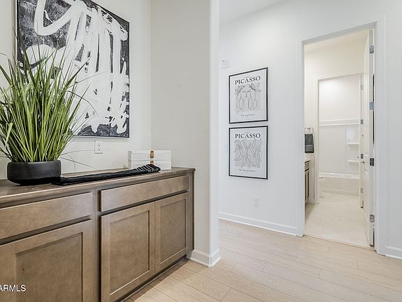 This idyllic home offers the perfect blend of comfort and elegance. From the moment you pull up to this charming home, you will instantly notice the attention to detail that went into every facet of this floorplan. The single-level design lends itself to a seamless flow from the kitchen to the great room. The modern kitchen features gorgeous quartz countertops and stainless-steel appliances. As an added bonus, you can enjoy views of the backyard from the great room. The backyard offers a covered patio and a spacious area perfect for creating your own desert paradise. The primary bedroom will impress you with the available space, as well as the primary bath, which offers dual sinks. The estimated completion for this home is April 2025!