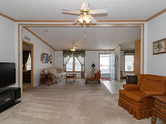 Check out this wonderfully maintained mobile home in the Hilltop Mobile Home Park. 3 bedrooms, 2 full baths and lots of living space....a large kitchen with an eating area, a living room and a dining room that's currently being used as a sitting room. The one car garage is part of the lot. You will be purchasing the mobile home and paying a monthly lot rent for the lot and garage. The accuracy of all the information provided is deemed reliable but not guaranteed.