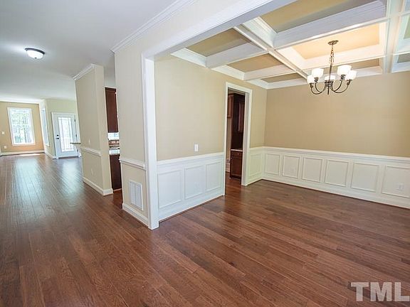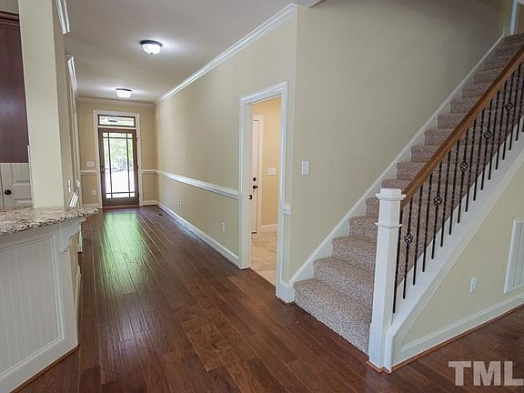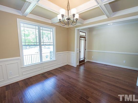 Custom built "Sheffield" plan on beautiful wooded lot. 1st floor master suite w/ granite counters & large closet w/wood shelving. Dining w/coffered ceiling & wainscoting. Kitchen w/granite, tile bksph, KitchenAid SS appliances w/5 burner gas stove. Hrdwood flooring 1st floor except laundry & Mbdrm. 9ft ceilings 1st/2nd floor. 2 buddy BA & huge bonus rm. Secondary Bdrms oversized w/WIC. Walk-in attic for future. Screen porch w/aluminum frame/rails. No rot ext. No city taxes 15 min to downtown Raleigh.