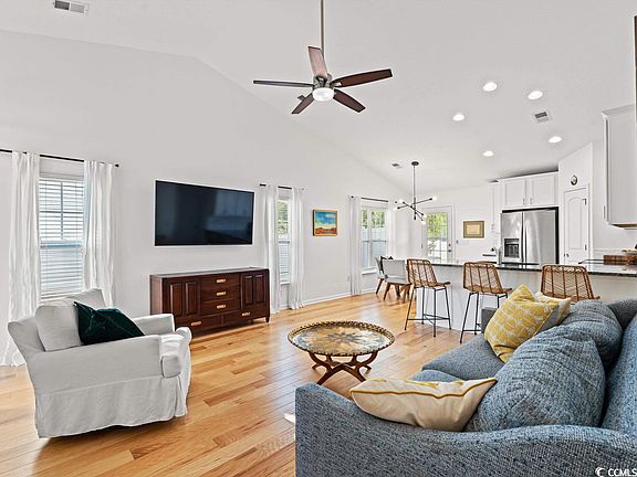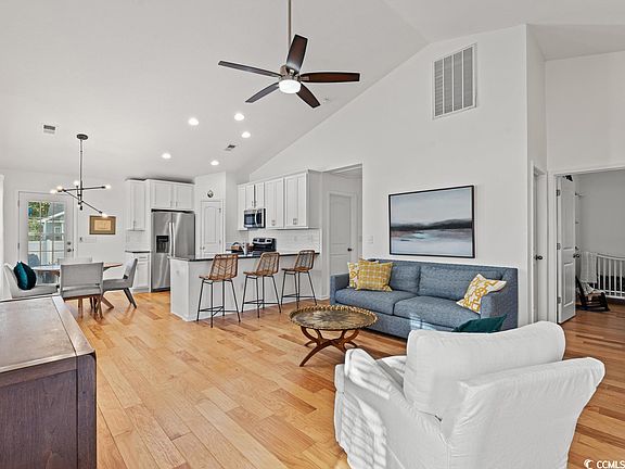Welcome to the exquisite 3 bedroom, 2 bathroom home in the heart of Carolina Forest. Bye bye builder grade materials and finishes! This home features engineered hardwood flooring throughout, matte porcelain tiles in the bathrooms, all walls, ceilings, cabinets, and trim updated with Benjamin Moore paint. As you walk through the front door you enter the living room with a vaulted ceiling. Just beyond the living room is the kitchen featuring granite countertops, subway tile backsplash, stainless steel appliances, large island/bar, and eat in kitchen. The kitchen features recessed lighting while the dining area has a modern matte black light fixture. The master bedroom has a vaulted ceiling and bay window. The master bathroom features custom lighting, mirror, and cabinet. The master closet is a custom walk-in closet with a mixture of hanging and folded storage. Between the master bedroom and living room is a custom utility and linen closet. The two guest bedrooms also include vaulted ceilings with one bedroom having a walk in closet. These bedrooms share the guest bathroom with custom lighting, mirror, and cabinet. The laundry room features mounted cabinets for storage, open shelving, and hanging racks. The back yard feels large with the white privacy vinyl fence and covered porch. The attached two car garage features a utility sink and an additional exterior door. The neighborhood features a clubhouse, playground, pool, and a separate shallow pool area. Call your agent to schedule a showing today!