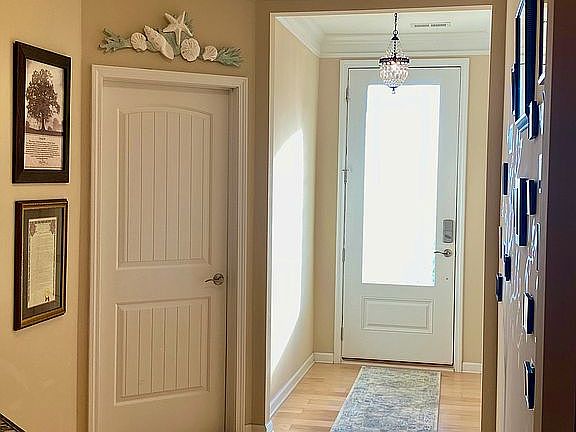 Move In Ready - Popular Pioneer Ranch. Enter to gleamng wood floors & open flrpln w/extensv millwork. chef kitchen lds cabinets & cntr spc gas rng, ss appl, lrg island w/seatng, & W/I pantry. Bay Wndw view frm dng. Primary bedrm ftrs trey clng, bay window, en-suite w/dble granite vanit, lg walkn shwr & W/I closet. Bedrm/Office w/closet & third bedrm. Enjoy the outdrs frm screen prch, pvr patio w/firepit. Oversz 2 Car w/adjustb custom shlvs. Award winning events, pool, fitness, trails 55+ resort lifestyle!
