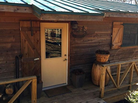 Top-notch getaway cabin in the woods with a large back deck and a metal roof. Exterior shutters on all the windows. Wood floors, open-beam ceiling in living room and French doors to back deck. Wood stove in the living room and electric buck stove in the bedroom. Walk-in closet and large utility room. New private well and a free flow cistern for backup water during a power outage. New Derksen storage building with 110 electric service for workshop.
