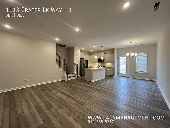 This 1558 square foot townhome home has 3 bedrooms and 2.5 bathrooms. This home is located at 1113 Crater Lake Way #1, Durham, NC 27713.