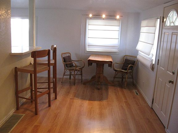 Smaller 1 bedroom house with large living room, small dining room and nice small kitchen.