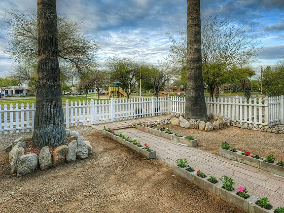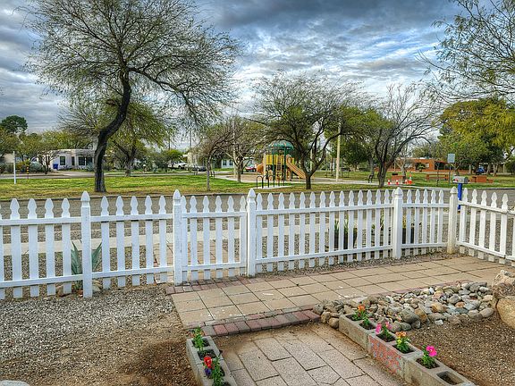 * VIEW VIDEO: https://az.movinghometour.com/22011219_Tucson%20MLS * Charming home with a white picket fence perfectly located facing a wonderful neighborhood park with a play set for children, mature trees & a big grassy place to play! Home has Mexican tiled floors, knotty pine paneling, Mexican tile accents in the kitchen. Living room, Dining room. 2 bedrooms & 1 bathroom with vintage tile. Plus a bonus room that faces a backyard, pool, Ramada, Room for a garden! New high efficiency mini split zoned heating and cooling! Off street parking! 206 sq ft 1 car garage plus 276 sq foot storage/workshop! Close to the U of A, Banner Hospital, Downtown Tucson 4th Avenue, restaurants and more!