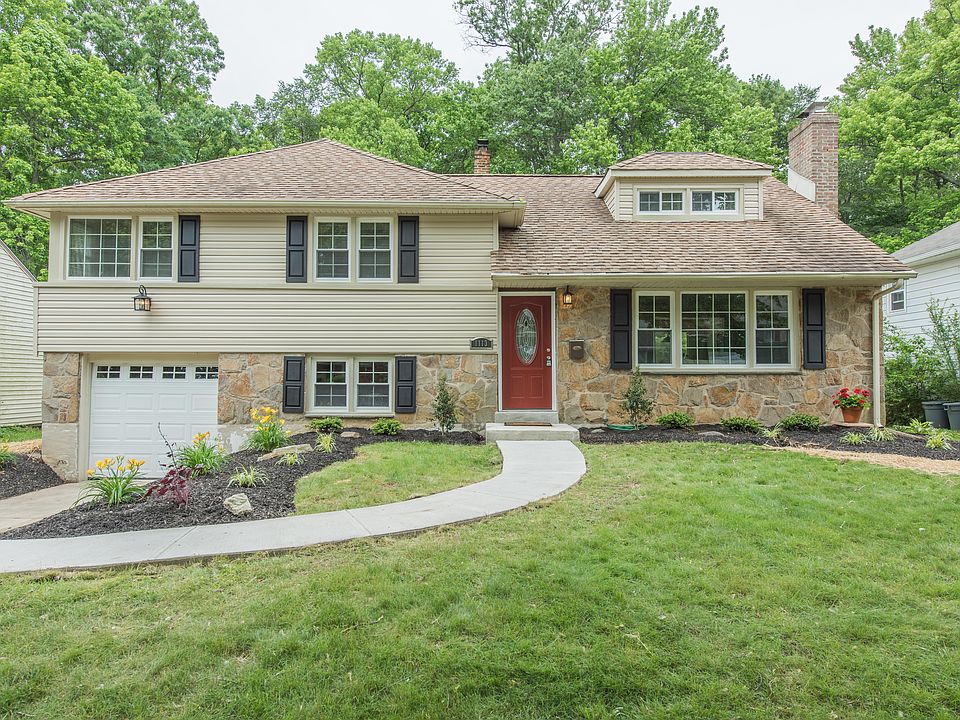 Welcome to this completely renovated 4 bedroom, 2.5 bath home in highly desirable Graylyn Crest.Upon entering the home, you are greeted by hardwood floors and a large living room with stone fireplace. The floorplan flows seamlessly from the living room into the dining room. This open concept, eat-in kitchen features custom Wolf white Shaker-style cabinetry with soft-close drawers and doors, granite countertops, stainless steel appliances, custom tile backsplash, tile floors and recessed lighting.Upstairs you will find 4 spacious bedrooms and 2 updated full baths. The master bedroom has a beautiful en suite bathroom and sliding glass doors leading to a roof deck which overlooks the backyard and wooded parkland, offering the perfect place to relax and enjoy your morning coffee.The lower level of the home features a family room, powder room and large laundry room with easy access to the one-car garage. A bonus 4-season sunroom is located off the laundry room and features wood flooring and sliding doors to the rear yard. This home is completed with a large patio overlooking your beautiful private yard. Convenient location, close to major routes & shopping for easy everyday living.
