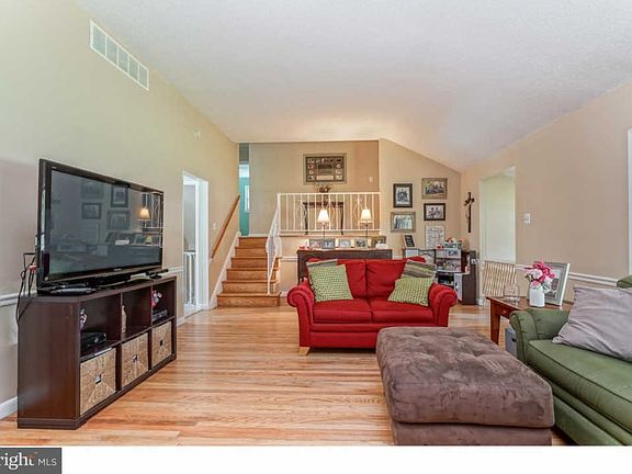 Home Sweet Home awaits in this beautiful 3 bedroom, 3 bathroom home in desirable Cherry Valley section of Cherry Hill! The covered front porch is welcoming. Inside, gleaming hardwood flooring flows throughout the living room with vaulted ceilings, bay window, charming built-ins and brick woodburning fireplace. Continue through to the dining room where the hardwoods continue as well as the fabulous vaulted ceilings. Sliding glass doors lead to the spacious deck making entertaining a breeze! Just off the dining room, is the spacious kitchen with cherry cabinetry, corian counters, and tile backsplash. The gleaming hardwoods continue from the main level, up into all three bedrooms on the upper level. The large master bedroom offers a ceiling fan and updated private bathroom with stall shower. The two spare bedrooms are spacious with plenty of natural light. The shared hall bathroom has also been updated with wood-look tile flooring and offers two vanities making morning routines just a bit easier! The lower level includes an excellent family room which is currently utilized as an additional bedroom. A full bathroom with stall shower is located on this level in addition to the laundry room. Access to the backyard via another set of sliding glass doors adds convenience. The backyard is sure to be the spot every summer! Relax in the in-ground pool on those hot days or take a seat on the deck which offers charming bench seating and plenty of room for additional outdoor seating or dining options. 2 car garage with garage door opener. Great location on a quiet street but close to local shopping, dining and major roadways!