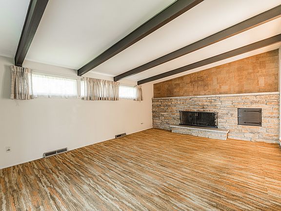 Did you say, "Mid-Century Ranch featuring a sunken Living Room with a vaulted ceiling and a gorgeous Stone Fireplace??" YES, PLEASE! It may just be Love at first Sight if you're looking for a place with style, character, and the space and floor plan that makes for a comfortable and functional home, yet needs some updating and personal touches to bring it up to it's full potential. So much to love here already, but room to transform it into the "Mid-Century MOD" home of 2025! Generous room sizes include an eat-in kitchen with peninsula, wood cabinets, ceramic tile and a formal dining room with beautiful hardwood floor. Step down into the inviting living room, complete with beamed vaulted ceiling and a stone fireplace that extends the entire wall and up to the ceiling which acts as a centerpiece and anchor to the character of this home. An extra value-add is the hardwood floor under the carpet! Slider door to patio and back yard provide natural light and easy access to outdoor entertaining space. Down the hall is a guest bath, 2 bedrooms with large closets and Primary Bedroom (also with hardwood under the carpet) and attached, walk-thru half bath. There's room to expand and add a tub/shower too! All bedrooms have "retro" wallpaper that will delight the Mid-Century-style enthusiast. There's room to roam in the full, finished basement with family/rec room, library nook with bookshelves, office, laundry room with walk-in closet and utility/storage room with cedar closet. There's even a dial up wall phone! Beautiful curb appeal, corner lot, and lovely yard with swing that stays. Whether you're captured by the way it is right now or dream to transform it into today's modern design, this solid and stylish home will be sure to impress. Attached 2-car garage with service door to the yard, convenient location near shopping, golf, parks, schools and easy I-88 access. Striking curb appeal outside, and even more to appreciate inside, make this an all-around Forever Home!