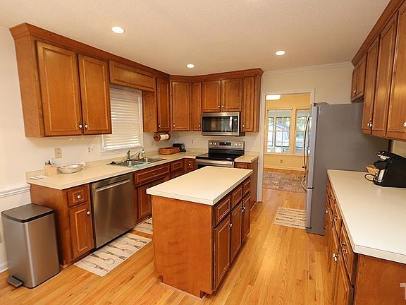 Hard to find 4 bdrm, all brick ranch in Heatherwoods. 2021 improvements include all interior & exterior paint(including gutters,) HVAC, kitchen appliances, many light fiixtures. Like new hardwoods, plantation shutters, newer windows (except din rm.) Wonderful 3 seasons rm blt by Patio Enclosures. Storage areas include 2 floored attics and outside stor bldg. One bdrm or dining rm could serve as home office. Spacious, clean 22.5 x 22.5 garage. Fenced yard. Walk to Y, Lake Benson and White Deer Park. Close to shopping, schools, post office. Homes in this nhood selling over 600K! Home professionally measured.
