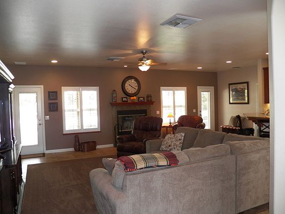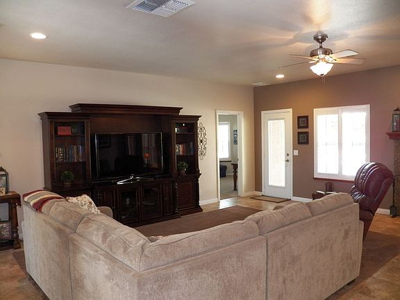This 2,207 sqft home in the Estates is located close to the main gate for the base. Xeriscape in the front and conventional landscaping in the rear will balance your water usage. The entry leads into a sprawling great room open to the kitchen and dining room. It has tile flooring and a granite faced fireplace with natural gas available. The kitchen boasts of granite counters, curved breakfast bar, abundant cabinetry, stainless steel appliances and a walk-in pantry off the laundry room. The master bedroom has room to roam, rich laminate flooring, and a french door to the rear yard. The master bathroom features a granite dual vanity, jetted tub, tiled shower stall and walk-in closet. The south bedroom corridor lays out with a front bedroom with laminate flooring, hall bathroom with dual vanity, middle bedroom with carpet, a jack and jill bathroom, and rear bedroom with carpet. All bedrooms have ceiling fans. The rear yard has a spacious patio for entertaining and relaxing while enjoying the lawn and planter area. A 3 car garage offers vehicle shelter and storage. The side driveway accommodates add'l guest parking, RV/boat or basketball fun. Come and see this home today.