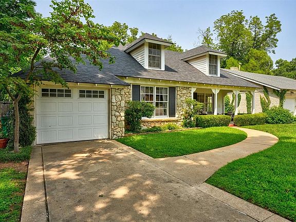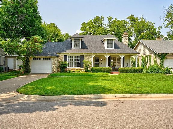 Welcome to this charming stone cottage tucked neatly within the idyllic community of Historic Brookhaven. Step inside this cozy haven to find two bedrooms and bath on the main level, along with a living, dining and remodeled kitchen that all overlook the expansive backyard. Upstairs, find a third bedroom with sitting area, vintage style bathroom and walk-in attic that could easily be converted to provide more useable square footage. Hardwood floors throughout, an abundance of natural light, and a wood-burning fireplace make this a welcoming retreat. The spacious backyard overlooks Deep Fork Creek and features numerous sitting areas, perfect for enjoying your morning coffee, winding down with a glass of wine, or watching the kids play. In addition, this home includes an accessory building (not included in square footage), complete with its own heating & cooling system, that could be ideal for an office, workout space or studio. Mechanical updates include brand new impact-resistant shingles, along with HVAC and hot water tank, both within the last 4 years. Situated within the heart of the city, with easy access to highways, just south of Classen Curve and close to Whole Foods, West Elm, Nichols Hills Plaza, and more...the convenience of this neighborhood cannot be beat! Don't let this one get away...schedule your showing today!