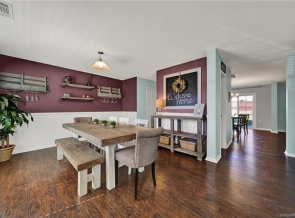Sensational Reid Pointe is a secluded neighborhood set back among winding trees, convenient to Fort Mill, Indian Land, Ballantyne and more! This home boasts a large open floor plan and updates galore including custom rustic shelving throughout main level, flooring and custom pantry. Showstopping stamped concrete patio, covered with ceiling fans, hanging couch/bed and entertaining space is a must see. Over-sized bedrooms all feature walk in closets. Owner's retreat has vaulted ceilings, spacious walk-in closet and separate glass shower and garden tub. Large laundry room with linen closet storage on second level, easily accessible from bedrooms. Last home on the row with large side yard showcasing fresh landscaping. *Note: most custom furniture will be sold outside of closing, please refer to co-list agent for details*
