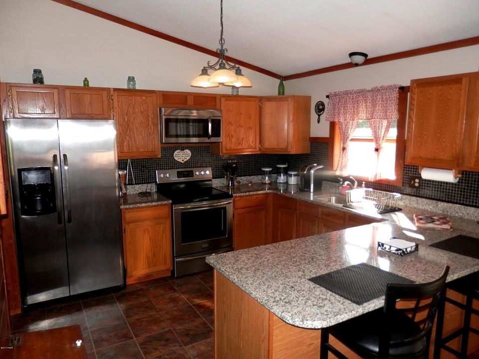 RAMBLING RANCH HOME 5.25 acres immaculate inside and out with an over sized two car detached garage.Features 4 bedrooms 1 1/2 baths,desirable open floor plan,Beautiful remodeled kitchen with gorgeous granite counter tops & stainless steel appliances which flows right into cozy living room with fireplace that provides great ambiance during winter time and a nice bay window looking out to the front yard. Then we lead you right into the dining room area which is a great place for the whole family to gather.Head down the steps to the full finished basement which has an efficient wood stove that heats the whole house,large family room,exercise room, 4th bedroom which has its own 1/2 bath and a large laundry room as well.Head outside to a lovely very private well manicured patio area with