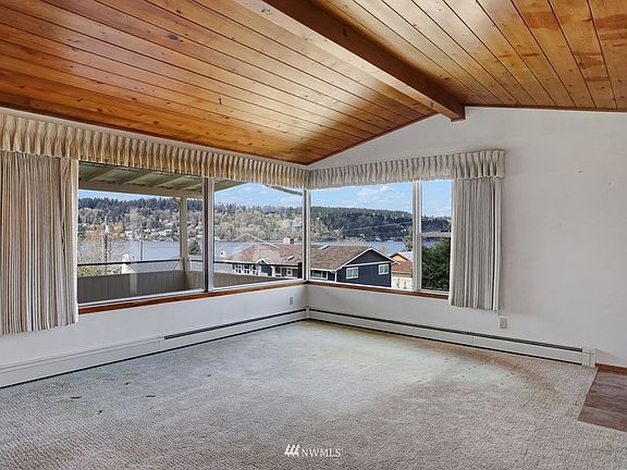 Mid-century home in the sought after Lower Kennydale neighborhood with spectacular Lake views! This well cared for basement rambler boasts a living rm w/brick surround fireplace, vaulted ceilings as well as picturesque windows to enjoy the views. Kitchen w/stainless appliances, dining space & french doors that open to the deck and sunroom; perfect for entertaining. Basement offers a rec rm w/built-ins & fireplace, 4th bdrm, updated 3/4 bath, utility rm & unfinished workspace/cellar. Additional features include hardwood flooring, ample storage throughout & waiting for you to make this your own. Partially fenced, landscaped & ample parking. Close to the lake trail, Kennydale Beach Park, great schools, all amenities & easy hwy access to I405.